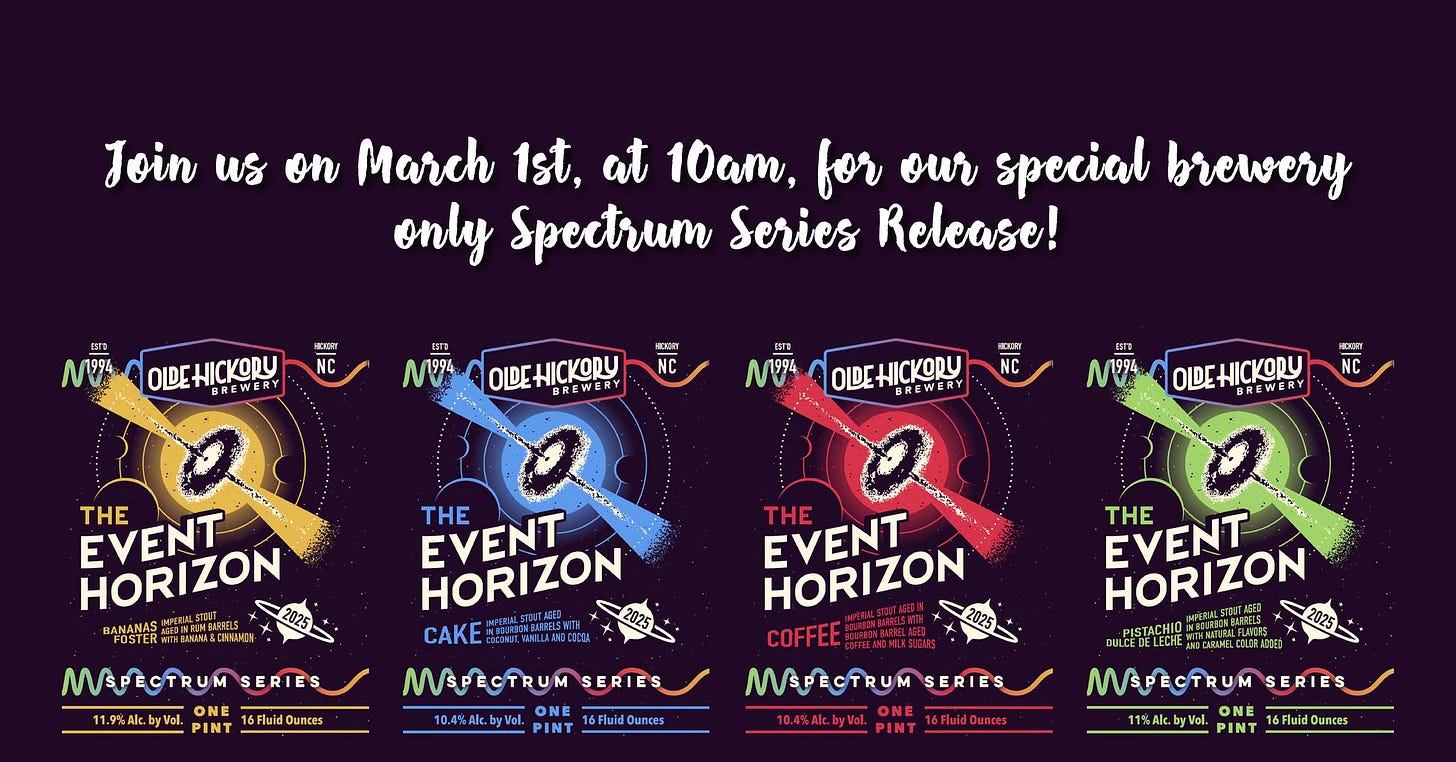Olde Hickory Brewery got some new brews they have been cooking up and now they will finally be released! The new 𝐄𝐯𝐞𝐧𝐭 𝐇𝐨𝐫𝐢𝐳𝐨𝐧 𝐒𝐩𝐞𝐜𝐭𝐫𝐮𝐦 𝐒𝐞𝐫𝐢𝐞𝐬 and are happy to announce our first brewery only beer release since covid!