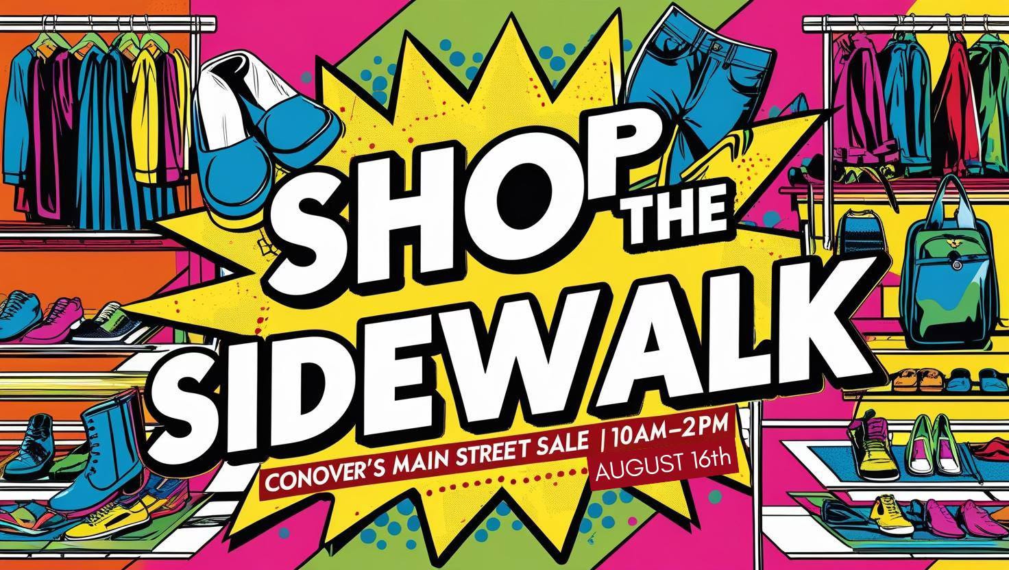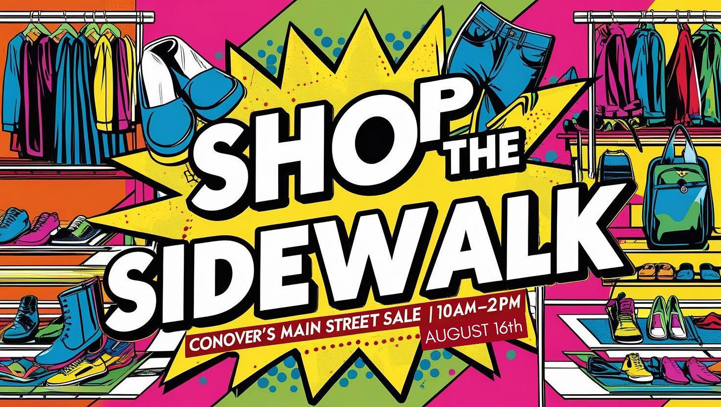 Join us in downtown Conover on Saturday, August 16th, from 10 AM – 2 PM for a day of amazing deals, unique finds, and small-town charm!