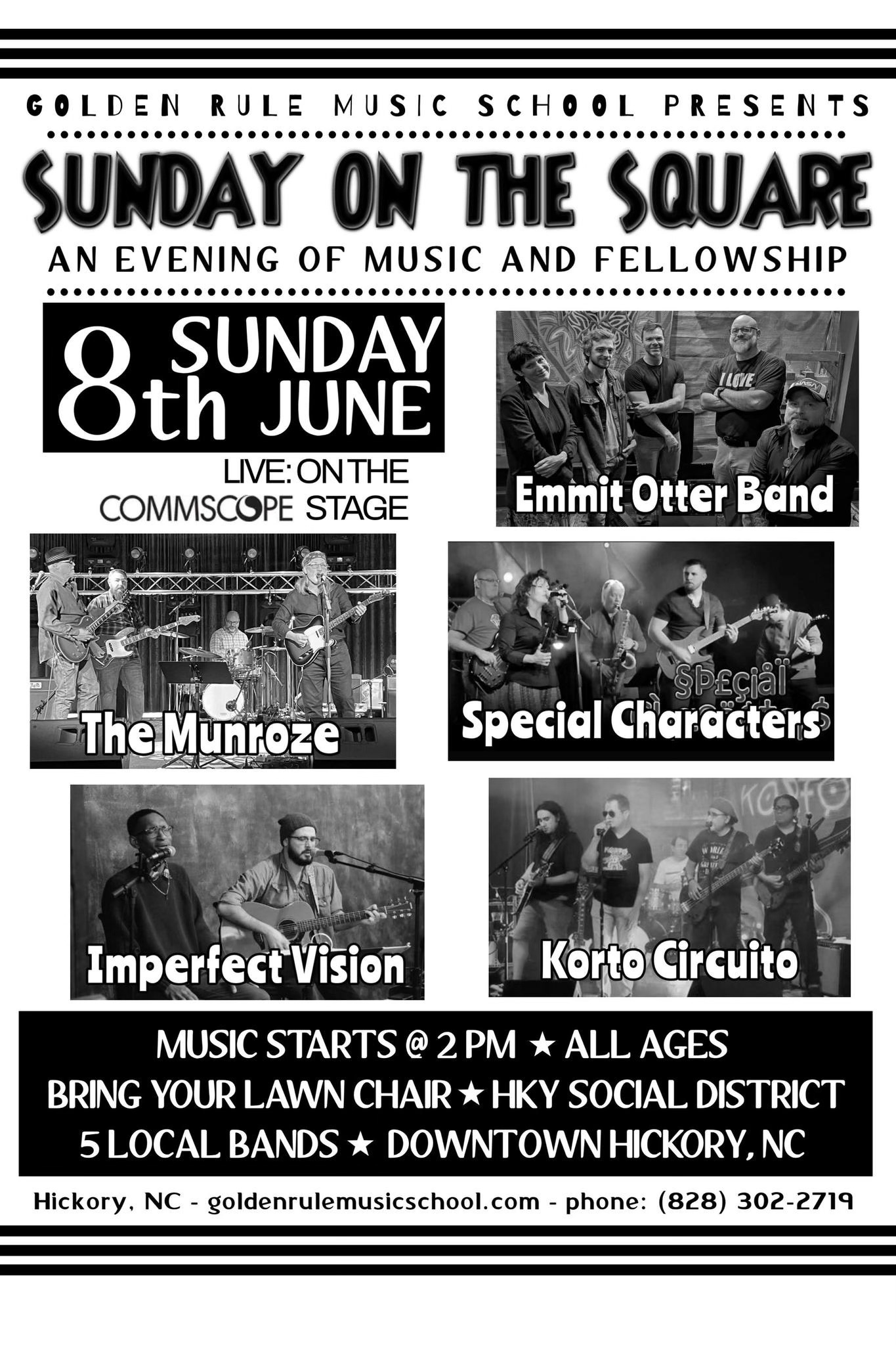 Sunday, June 8th starting at 2pm on the CommScope stage in Downtown Hickory, NC. Golden Rule Music School presents music from your friends, neighbors, local business owners, and lovers of music. 5 local bands bringing music to the community. Come join us!